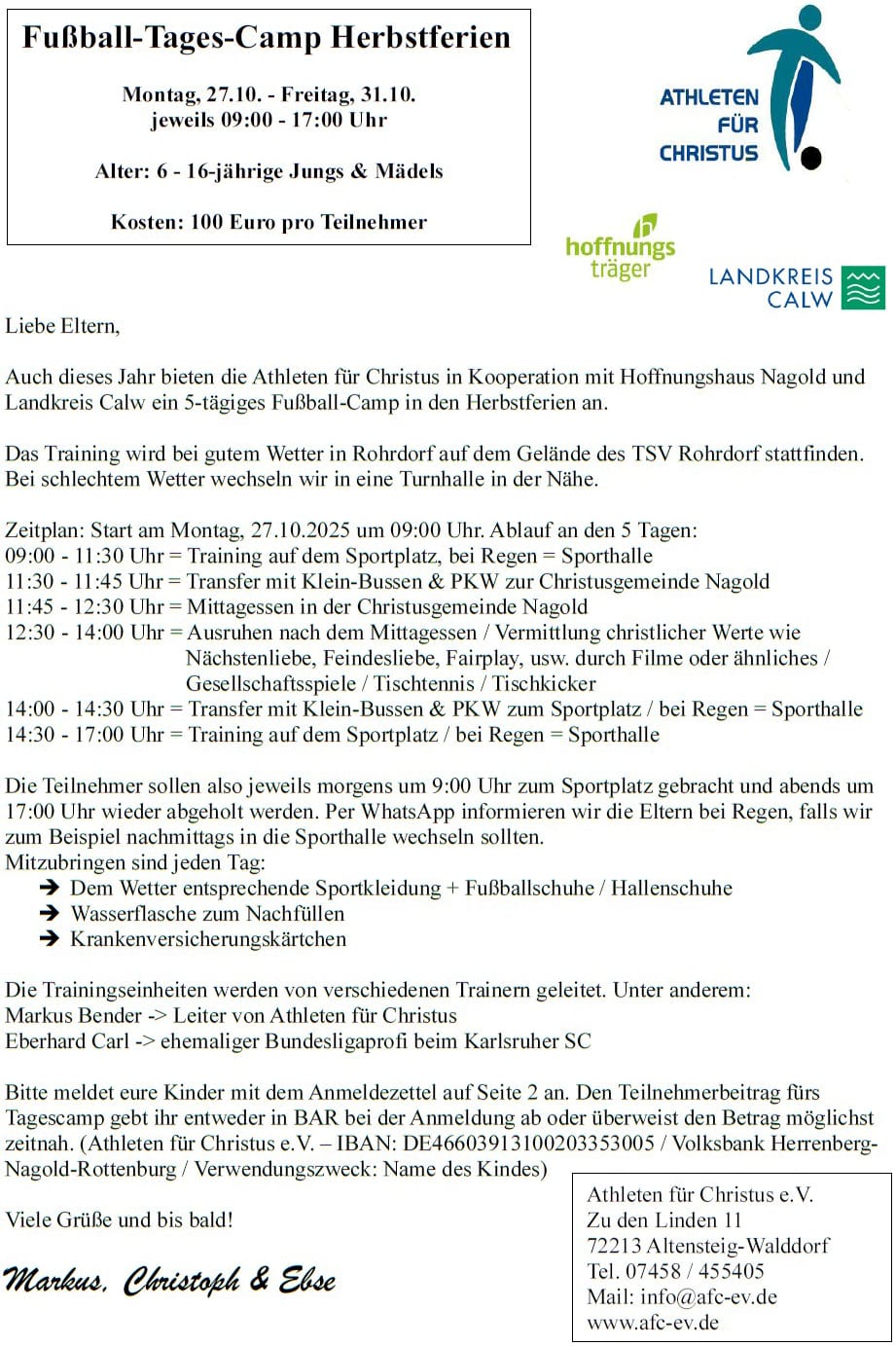 Fußballcamps, Freizeiten, Veranstaltungen für Schulen und Vereine, Sportlergottesdienste, Seminare und Bibelarbeiten. Für Details lies hier weiter.